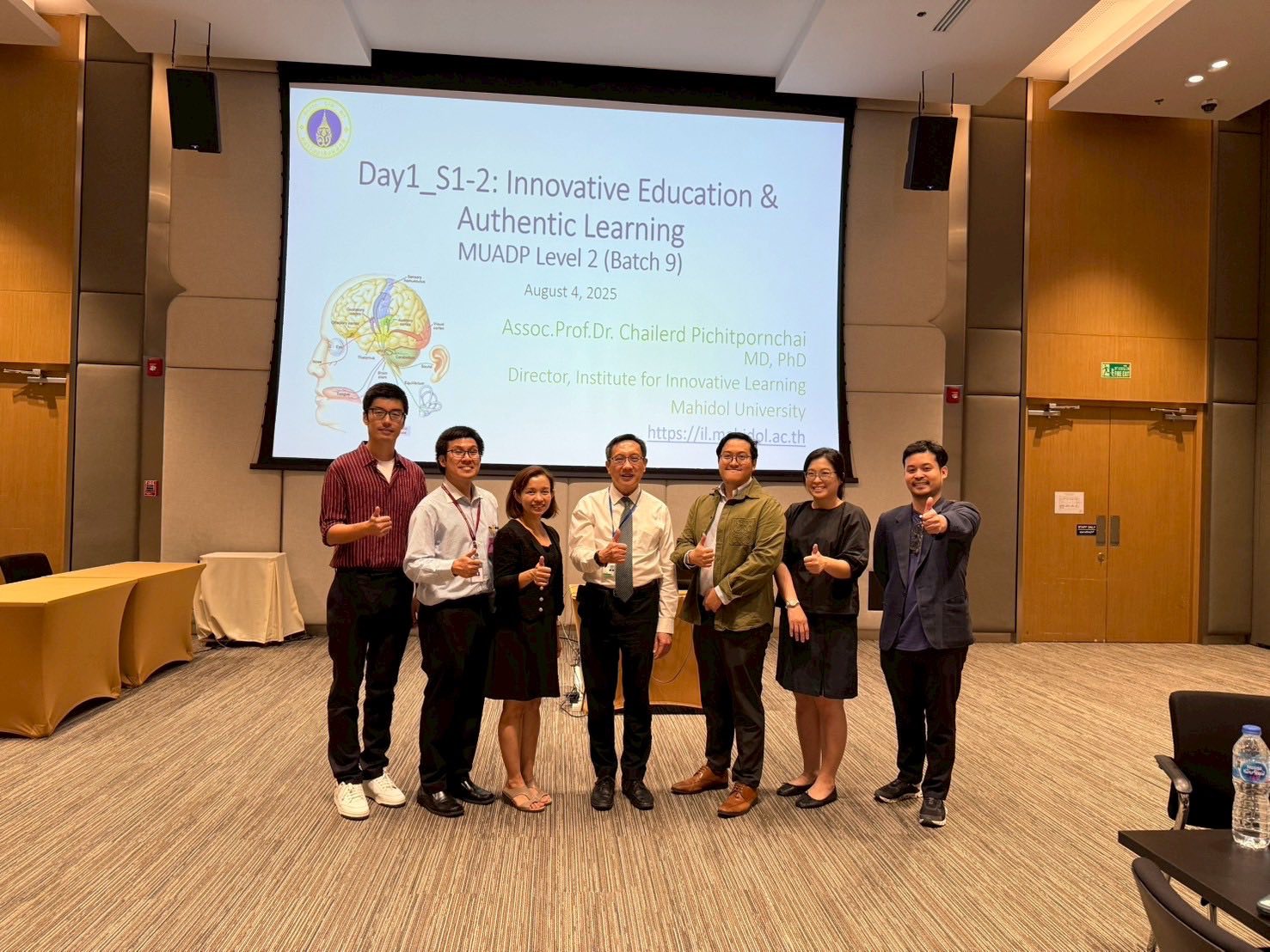 วันที่ 4 สิงหาคม 2568 ศาสตราจารย์ ดร. เภสัชกรเนติ สุขสมบูรณ์ รองอธิการบดีฝ่ายการศึกษา มหาวิทยาลัยมหิดล เป็นประธานในพิธีเปิดโครงการพัฒนาศักยภาพอาจารย์มหาวิทยาลัยมหิดล ด้านการศึกษา ปีที่ 5 (Mahidol University Academic Development Program : MU-ADP#5) หัวข้อ “การพัฒนาระดับสมรรถนะอาจารย์ ระดับที่ 2 ตามเกณฑ์มาตรฐานคุณภาพอาจารย์ MUPSF รอบบรรยายภาษาอังกฤษ” โดย รองศาสตราจารย์ ดร. นายแพทย์ชัยเลิศ พิชิตพรชัย ผู้อำนวยการสถาบันนวัตกรรมการเรียนรู้ มหาวิทยาลัยมหิดล และทีมวิทยากร จากสถาบันนวัตกรรมการเรียนรู้ มหาวิทยาลัยมหิดล ถ่ายทอดความรู้และประสบการณ์ โดยจัดขึ้นระหว่างวันที่ 4 – 8 สิงหาคม 2568 เพื่อส่งเสริมและพัฒนาทักษะการสอนของคณาจารย์ให้มีคุณภาพและประสิทธิภาพมากยิ่งขึ้น อันจะส่งผลดีต่อการพัฒนาการศึกษาของมหาวิทยาลัย ณ ศูนย์ประชุมและอาคารจอดรถมหิดลสิทธาคาร